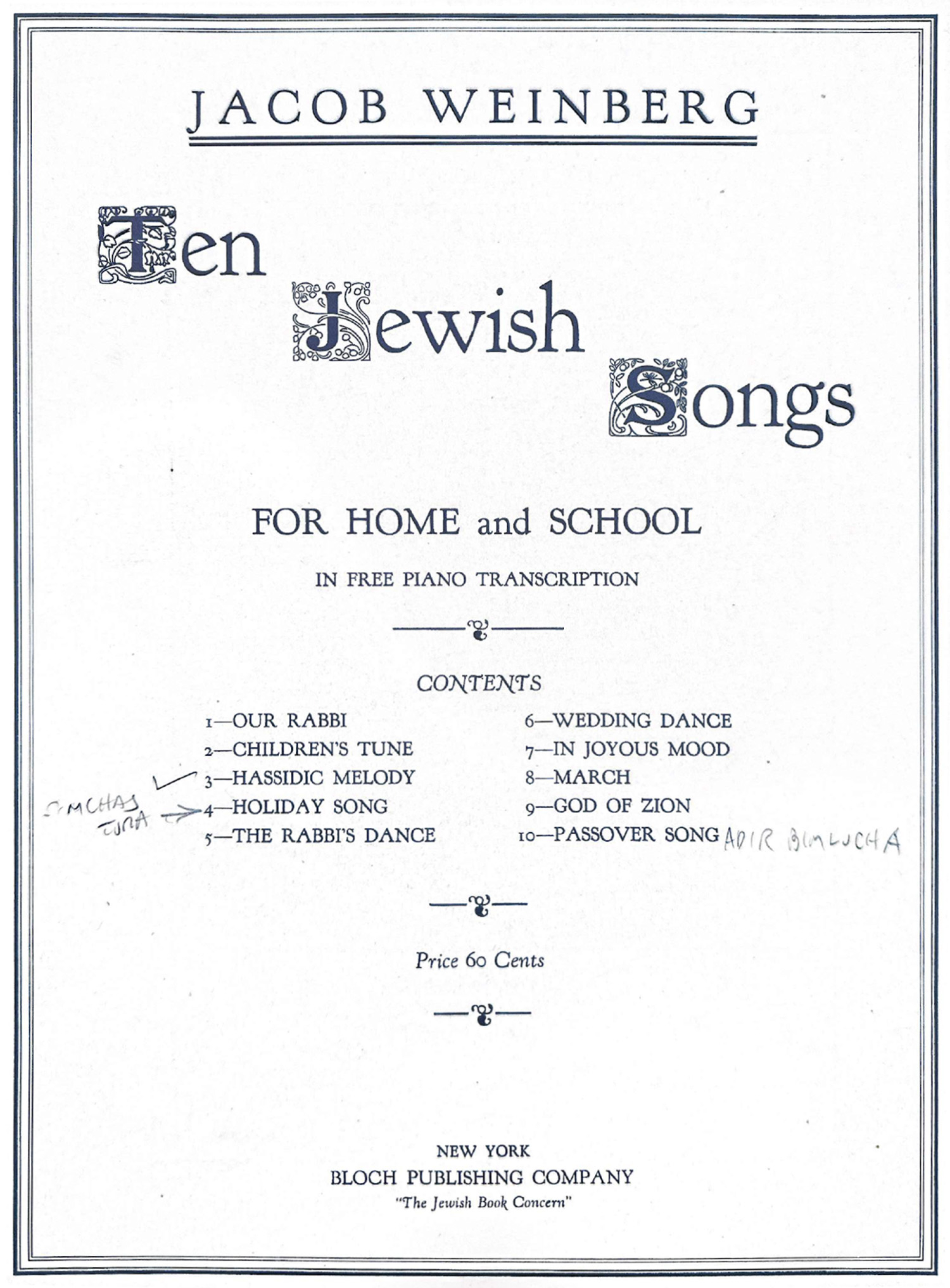 Jewish Songs and Dances for Piano: Jacob Weinberg’s "Ten Jewish Songs" (1933)